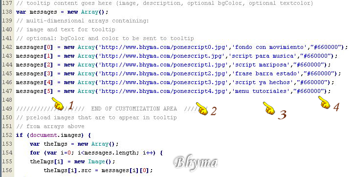 Vamos a ver lo que tenemos, todo el script lleva los datos relacionados con las ventanitas que se abren al pasar el raton por encima del vínculo que hemos creado, y la ventanita tiene un fondo, un borde y un tamaño y color de fuente, esto lo cambiamos aqui: