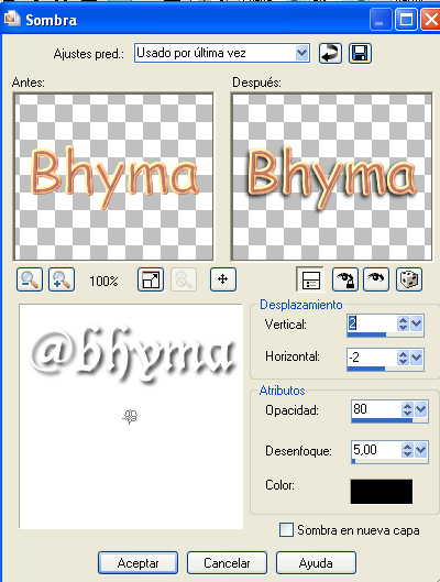 Sombrear con estos valores: horizontal 2 vertical -2 opacidad 80, desenfoque 5 color negro.