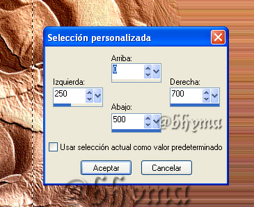 5_Seleccion rectángulo, seleccion personalizada, con estos valores: Arriba 0, Izquierda 250, Abajo500, Derecha 700. ver captura: