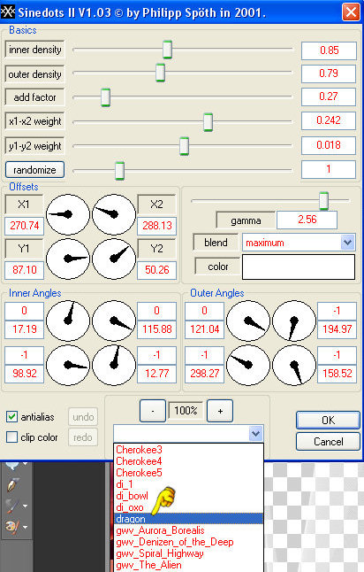 Efectos - Complementos - DragonFly - Sinedots II, con el preset dragon.