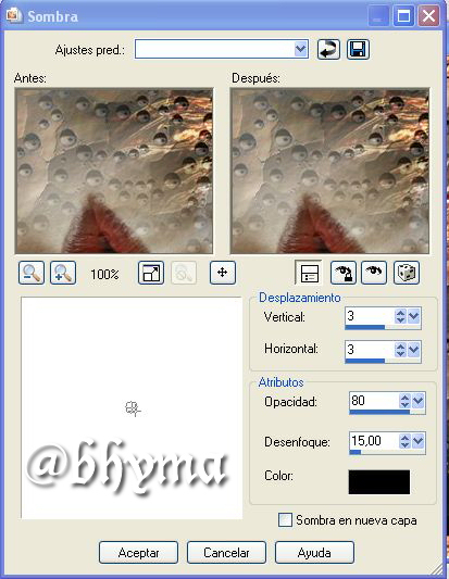 Selección/ Invertir / Efectos 3D/ Sombras con estos valores: